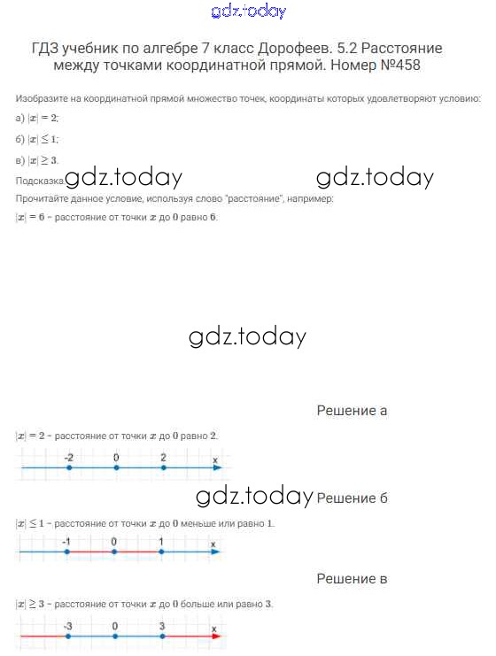 На страницах сайта gdz.today вы найдете учебный и вспомогательный материал, направленный на улучшения знаний школьной программы. ГДЗ - онлайн мир знаний Решение к упражнениям 458 Учебнику по Алгебре для 7 класса Дорофеев, Суворова Просвещение Академический школьный учебник 2020