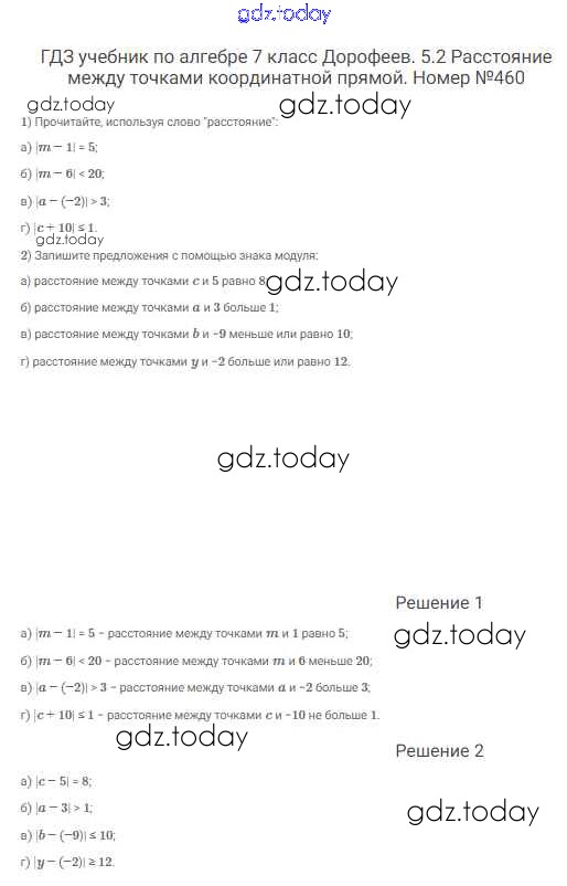 На страницах сайта gdz.today вы найдете учебный и вспомогательный материал, направленный на улучшения знаний школьной программы. ГДЗ - онлайн мир знаний Решение к упражнениям 460 Учебнику по Алгебре для 7 класса Дорофеев, Суворова Просвещение Академический школьный учебник 2020