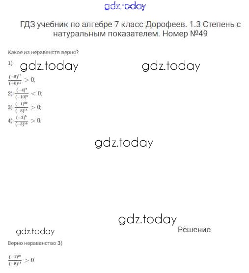 Ответы к Решение к упражнениям 49 Учебнику по Алгебре для 7 класса Дорофеев, Суворова Просвещение Академический школьный учебник 2020