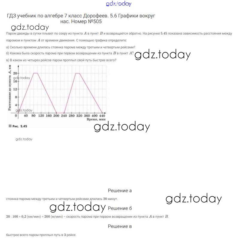 На страницах сайта gdz.today вы найдете учебный и вспомогательный материал, направленный на улучшения знаний школьной программы. ГДЗ - онлайн мир знаний Решение к упражнениям 505 Учебнику по Алгебре для 7 класса Дорофеев, Суворова Просвещение Академический школьный учебник 2020
