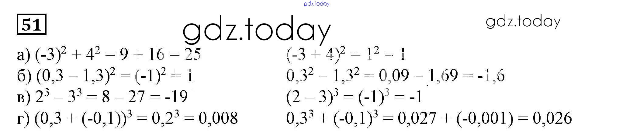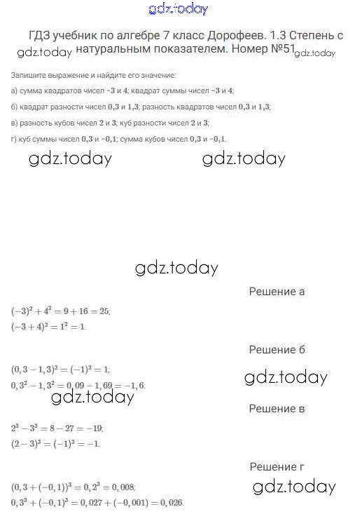 Ответы к Решение к упражнениям 51 Учебнику по Алгебре для 7 класса Дорофеев, Суворова Просвещение Академический школьный учебник 2020