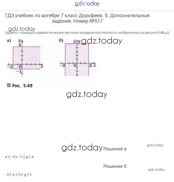 На страницах сайта gdz.today вы найдете учебный и вспомогательный материал, направленный на улучшения знаний школьной программы. ГДЗ - онлайн мир знаний Решение к упражнениям 517 Учебнику по Алгебре для 7 класса Дорофеев, Суворова Просвещение Академический школьный учебник 2020