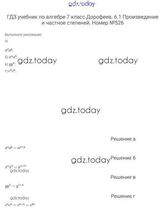 На страницах сайта gdz.today вы найдете учебный и вспомогательный материал, направленный на улучшения знаний школьной программы. ГДЗ - онлайн мир знаний Решение к упражнениям 526 Учебнику по Алгебре для 7 класса Дорофеев, Суворова Просвещение Академический школьный учебник 2020