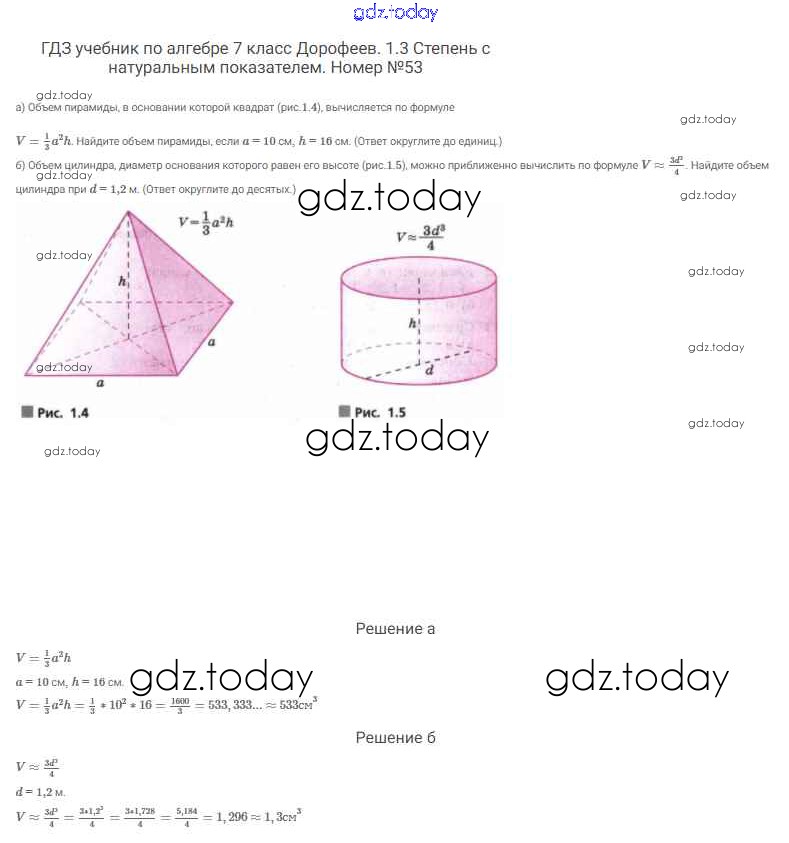 Ответы к Решение к упражнениям 53 Учебнику по Алгебре для 7 класса Дорофеев, Суворова Просвещение Академический школьный учебник 2020
