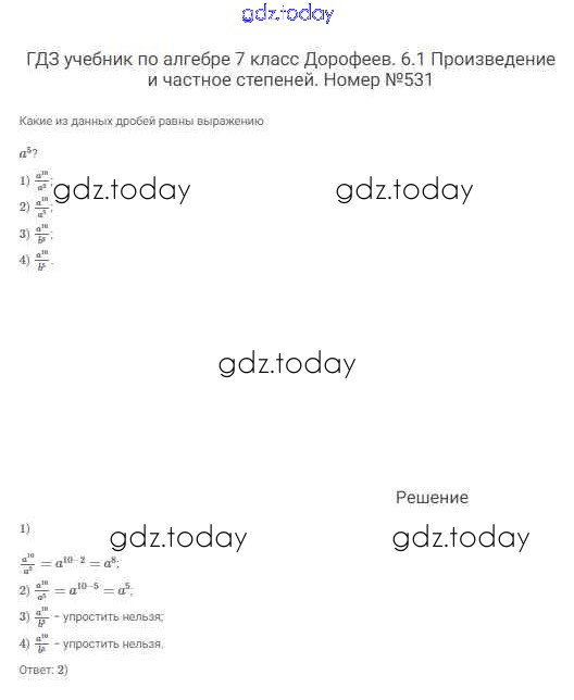 На страницах сайта gdz.today вы найдете учебный и вспомогательный материал, направленный на улучшения знаний школьной программы. ГДЗ - онлайн мир знаний Решение к упражнениям 531 Учебнику по Алгебре для 7 класса Дорофеев, Суворова Просвещение Академический школьный учебник 2020