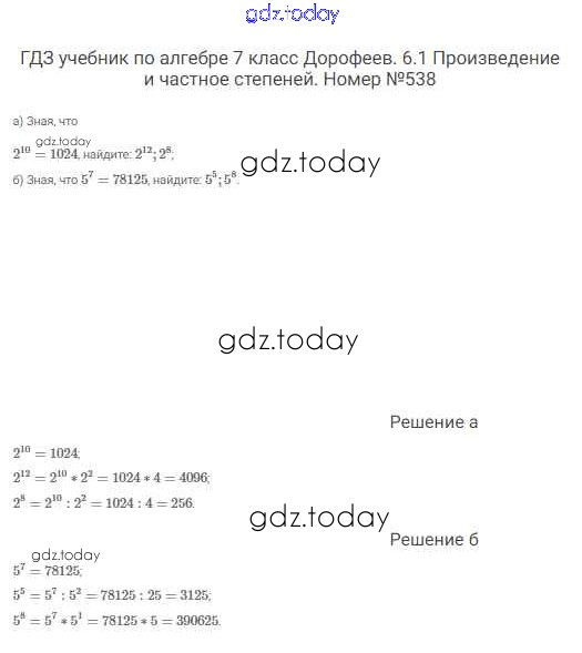 На страницах сайта gdz.today вы найдете учебный и вспомогательный материал, направленный на улучшения знаний школьной программы. ГДЗ - онлайн мир знаний Решение к упражнениям 538 Учебнику по Алгебре для 7 класса Дорофеев, Суворова Просвещение Академический школьный учебник 2020