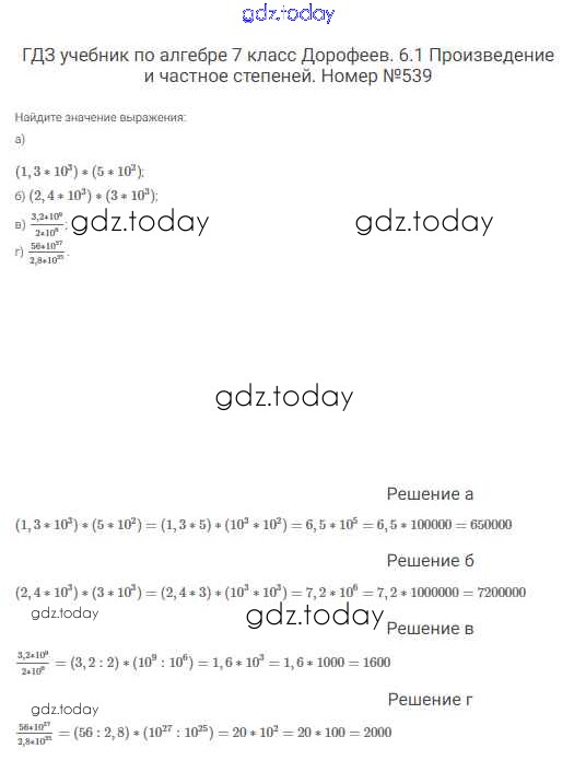 На страницах сайта gdz.today вы найдете учебный и вспомогательный материал, направленный на улучшения знаний школьной программы. ГДЗ - онлайн мир знаний Решение к упражнениям 539 Учебнику по Алгебре для 7 класса Дорофеев, Суворова Просвещение Академический школьный учебник 2020