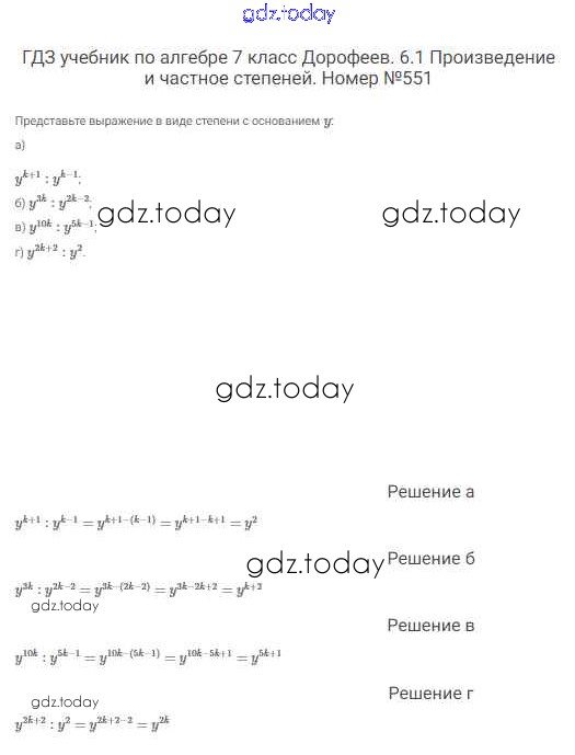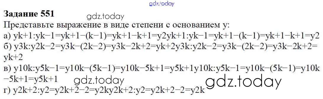 На страницах сайта gdz.today вы найдете учебный и вспомогательный материал, направленный на улучшения знаний школьной программы. ГДЗ - онлайн мир знаний Решение к упражнениям 551 Учебнику по Алгебре для 7 класса Дорофеев, Суворова Просвещение Академический школьный учебник 2020