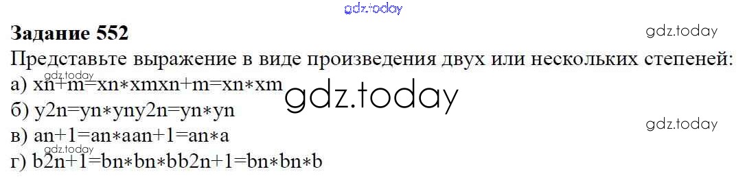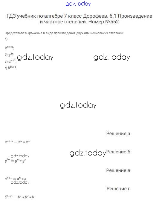 На страницах сайта gdz.today вы найдете учебный и вспомогательный материал, направленный на улучшения знаний школьной программы. ГДЗ - онлайн мир знаний Решение к упражнениям 552 Учебнику по Алгебре для 7 класса Дорофеев, Суворова Просвещение Академический школьный учебник 2020