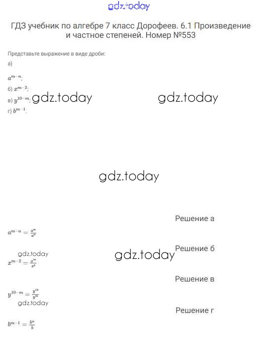 На страницах сайта gdz.today вы найдете учебный и вспомогательный материал, направленный на улучшения знаний школьной программы. ГДЗ - онлайн мир знаний Решение к упражнениям 553 Учебнику по Алгебре для 7 класса Дорофеев, Суворова Просвещение Академический школьный учебник 2020
