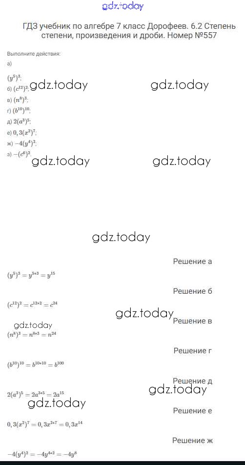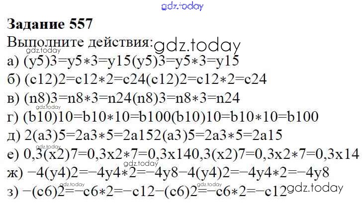 На страницах сайта gdz.today вы найдете учебный и вспомогательный материал, направленный на улучшения знаний школьной программы. ГДЗ - онлайн мир знаний Решение к упражнениям 557 Учебнику по Алгебре для 7 класса Дорофеев, Суворова Просвещение Академический школьный учебник 2020