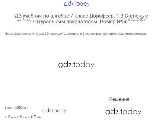 На страницах сайта gdz.today вы найдете учебный и вспомогательный материал, направленный на улучшения знаний школьной программы. ГДЗ - онлайн мир знаний Решение к упражнениям 56 Учебнику по Алгебре для 7 класса Дорофеев, Суворова Просвещение Академический школьный учебник 2020