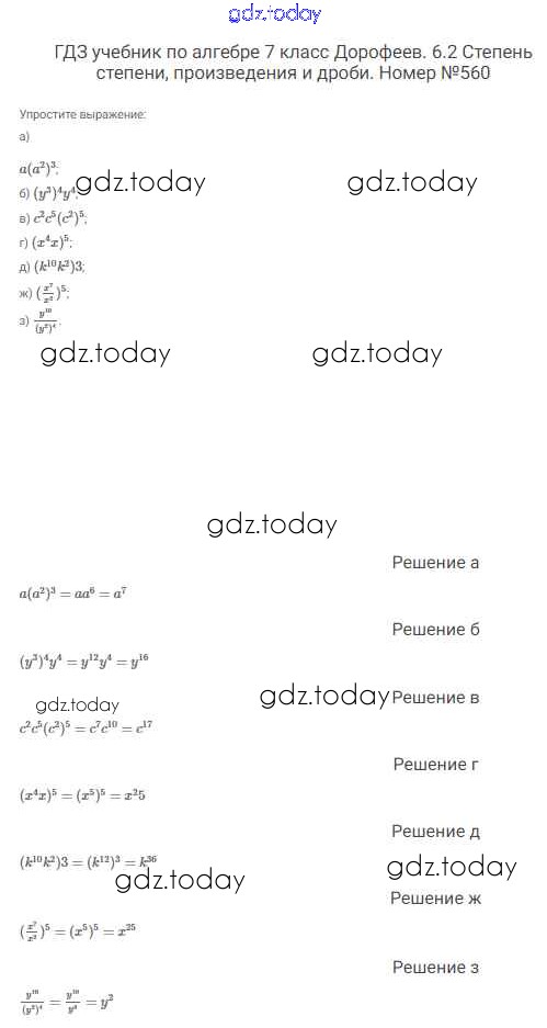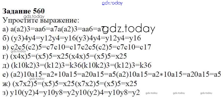 На страницах сайта gdz.today вы найдете учебный и вспомогательный материал, направленный на улучшения знаний школьной программы. ГДЗ - онлайн мир знаний Решение к упражнениям 560 Учебнику по Алгебре для 7 класса Дорофеев, Суворова Просвещение Академический школьный учебник 2020