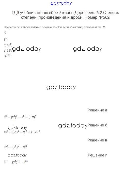 На страницах сайта gdz.today вы найдете учебный и вспомогательный материал, направленный на улучшения знаний школьной программы. ГДЗ - онлайн мир знаний Решение к упражнениям 562 Учебнику по Алгебре для 7 класса Дорофеев, Суворова Просвещение Академический школьный учебник 2020