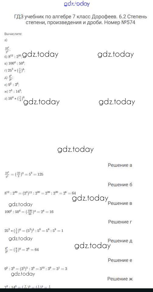 На страницах сайта gdz.today вы найдете учебный и вспомогательный материал, направленный на улучшения знаний школьной программы. ГДЗ - онлайн мир знаний Решение к упражнениям 574 Учебнику по Алгебре для 7 класса Дорофеев, Суворова Просвещение Академический школьный учебник 2020