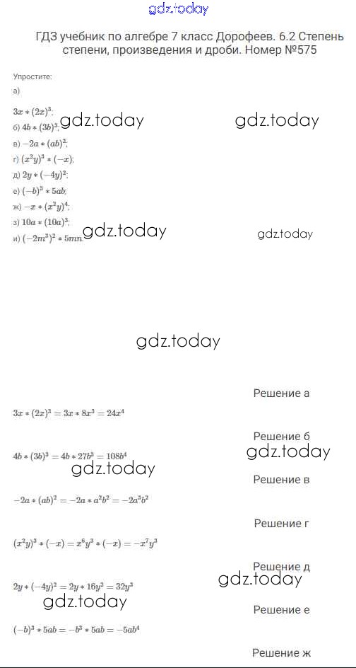 На страницах сайта gdz.today вы найдете учебный и вспомогательный материал, направленный на улучшения знаний школьной программы. ГДЗ - онлайн мир знаний Решение к упражнениям 575 Учебнику по Алгебре для 7 класса Дорофеев, Суворова Просвещение Академический школьный учебник 2020