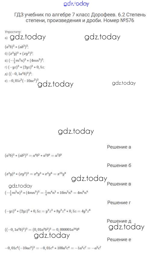 На страницах сайта gdz.today вы найдете учебный и вспомогательный материал, направленный на улучшения знаний школьной программы. ГДЗ - онлайн мир знаний Решение к упражнениям 576 Учебнику по Алгебре для 7 класса Дорофеев, Суворова Просвещение Академический школьный учебник 2020