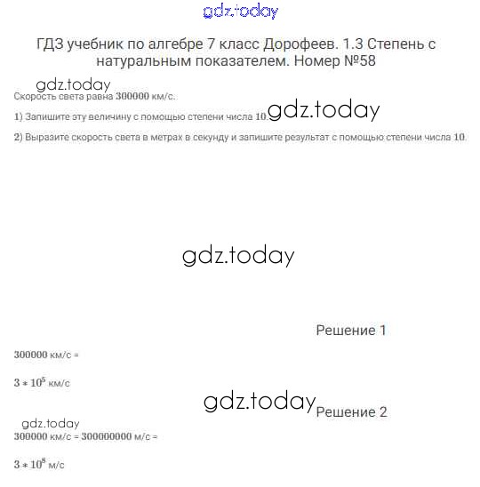 На страницах сайта gdz.today вы найдете учебный и вспомогательный материал, направленный на улучшения знаний школьной программы. ГДЗ - онлайн мир знаний Решение к упражнениям 58 Учебнику по Алгебре для 7 класса Дорофеев, Суворова Просвещение Академический школьный учебник 2020