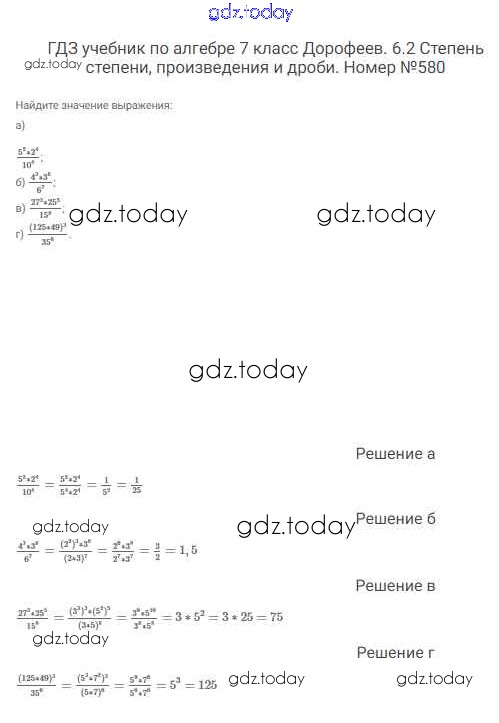 На страницах сайта gdz.today вы найдете учебный и вспомогательный материал, направленный на улучшения знаний школьной программы. ГДЗ - онлайн мир знаний Решение к упражнениям 580 Учебнику по Алгебре для 7 класса Дорофеев, Суворова Просвещение Академический школьный учебник 2020