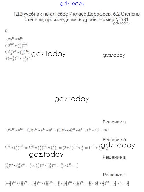 На страницах сайта gdz.today вы найдете учебный и вспомогательный материал, направленный на улучшения знаний школьной программы. ГДЗ - онлайн мир знаний Решение к упражнениям 581 Учебнику по Алгебре для 7 класса Дорофеев, Суворова Просвещение Академический школьный учебник 2020