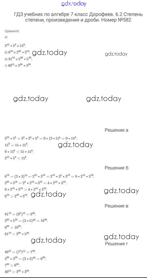 На страницах сайта gdz.today вы найдете учебный и вспомогательный материал, направленный на улучшения знаний школьной программы. ГДЗ - онлайн мир знаний Решение к упражнениям 582 Учебнику по Алгебре для 7 класса Дорофеев, Суворова Просвещение Академический школьный учебник 2020
