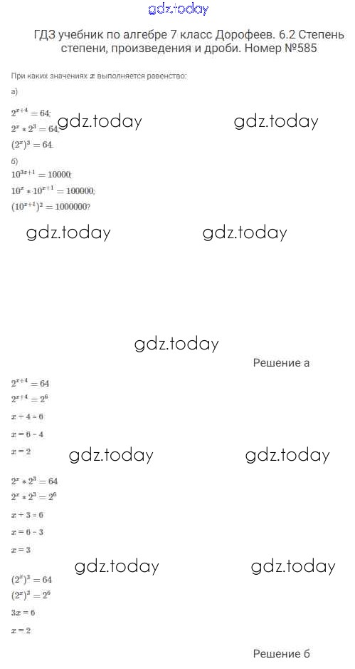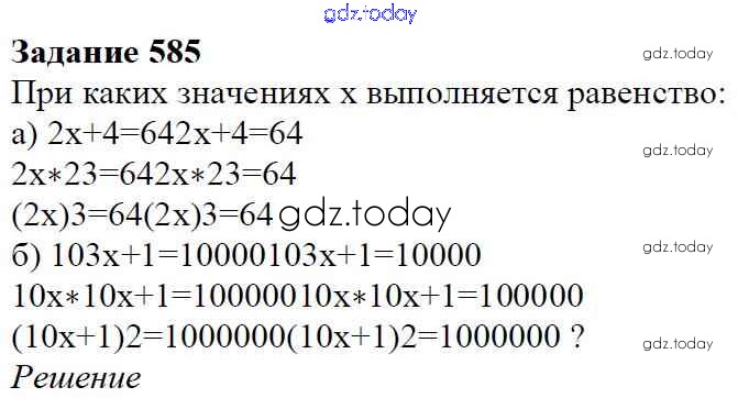 На страницах сайта gdz.today вы найдете учебный и вспомогательный материал, направленный на улучшения знаний школьной программы. ГДЗ - онлайн мир знаний Решение к упражнениям 585 Учебнику по Алгебре для 7 класса Дорофеев, Суворова Просвещение Академический школьный учебник 2020