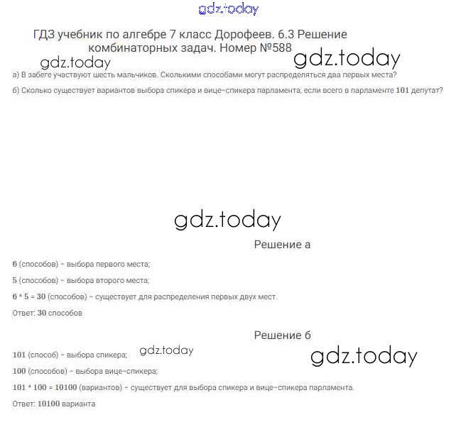На страницах сайта gdz.today вы найдете учебный и вспомогательный материал, направленный на улучшения знаний школьной программы. ГДЗ - онлайн мир знаний Решение к упражнениям 588 Учебнику по Алгебре для 7 класса Дорофеев, Суворова Просвещение Академический школьный учебник 2020
