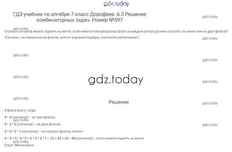 На страницах сайта gdz.today вы найдете учебный и вспомогательный материал, направленный на улучшения знаний школьной программы. ГДЗ - онлайн мир знаний Решение к упражнениям 597 Учебнику по Алгебре для 7 класса Дорофеев, Суворова Просвещение Академический школьный учебник 2020