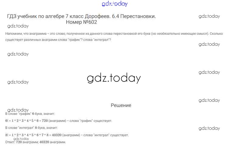 На страницах сайта gdz.today вы найдете учебный и вспомогательный материал, направленный на улучшения знаний школьной программы. ГДЗ - онлайн мир знаний Решение к упражнениям 602 Учебнику по Алгебре для 7 класса Дорофеев, Суворова Просвещение Академический школьный учебник 2020