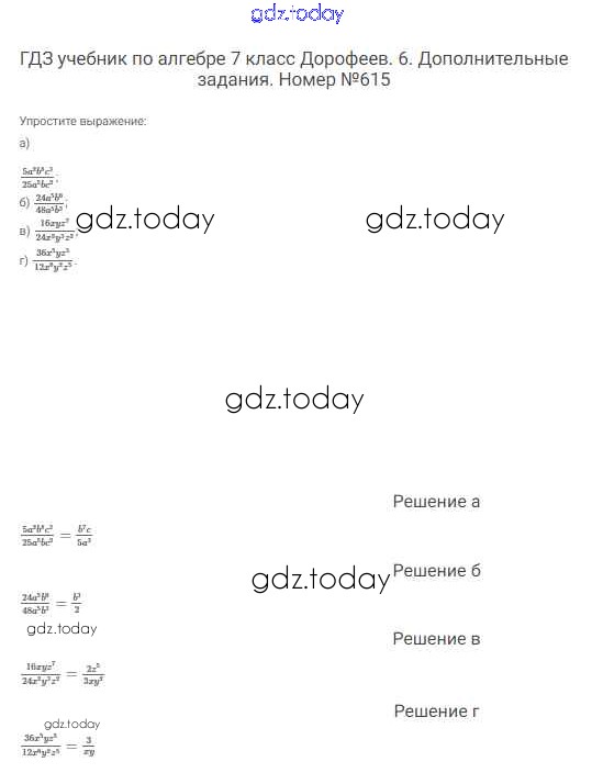 На страницах сайта gdz.today вы найдете учебный и вспомогательный материал, направленный на улучшения знаний школьной программы. ГДЗ - онлайн мир знаний Решение к упражнениям 615 Учебнику по Алгебре для 7 класса Дорофеев, Суворова Просвещение Академический школьный учебник 2020