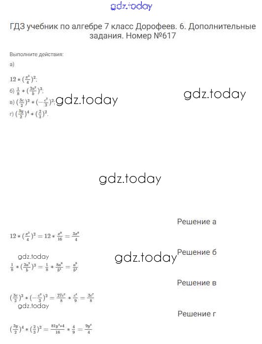 На страницах сайта gdz.today вы найдете учебный и вспомогательный материал, направленный на улучшения знаний школьной программы. ГДЗ - онлайн мир знаний Решение к упражнениям 617 Учебнику по Алгебре для 7 класса Дорофеев, Суворова Просвещение Академический школьный учебник 2020