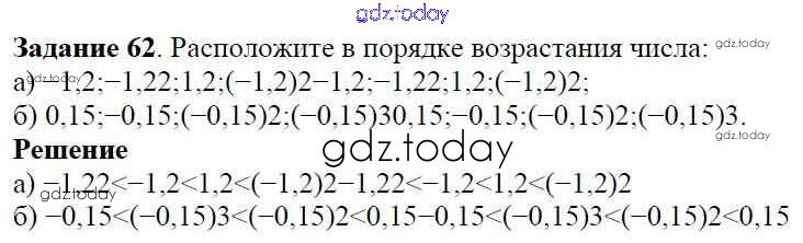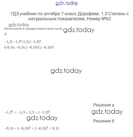 Ответы к Решение к упражнениям 62 Учебнику по Алгебре для 7 класса Дорофеев, Суворова Просвещение Академический школьный учебник 2020
