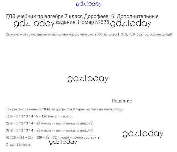 На страницах сайта gdz.today вы найдете учебный и вспомогательный материал, направленный на улучшения знаний школьной программы. ГДЗ - онлайн мир знаний Решение к упражнениям 625 Учебнику по Алгебре для 7 класса Дорофеев, Суворова Просвещение Академический школьный учебник 2020