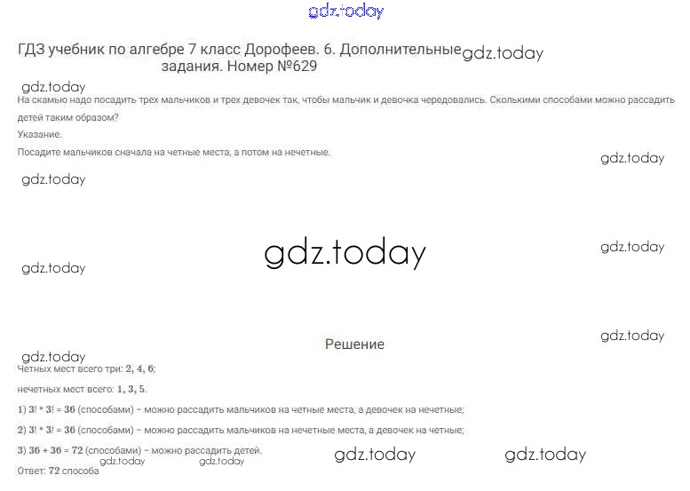 На страницах сайта gdz.today вы найдете учебный и вспомогательный материал, направленный на улучшения знаний школьной программы. ГДЗ - онлайн мир знаний Решение к упражнениям 629 Учебнику по Алгебре для 7 класса Дорофеев, Суворова Просвещение Академический школьный учебник 2020