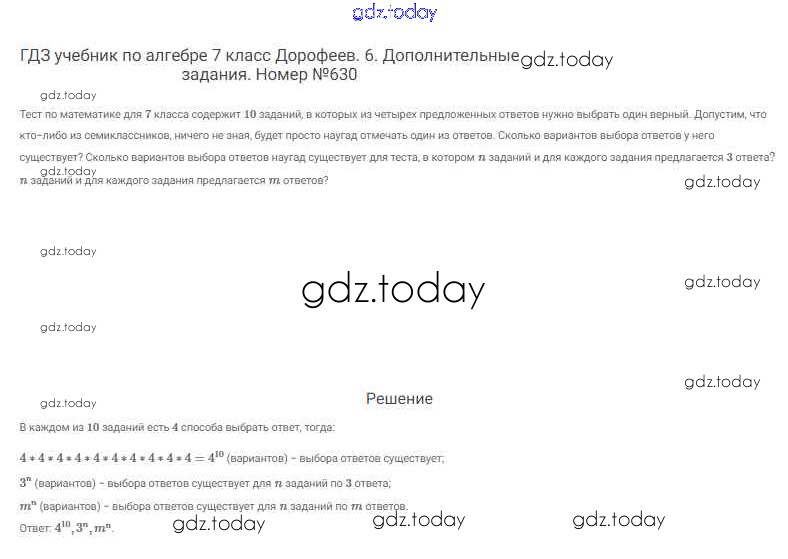 На страницах сайта gdz.today вы найдете учебный и вспомогательный материал, направленный на улучшения знаний школьной программы. ГДЗ - онлайн мир знаний Решение к упражнениям 630 Учебнику по Алгебре для 7 класса Дорофеев, Суворова Просвещение Академический школьный учебник 2020