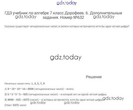На страницах сайта gdz.today вы найдете учебный и вспомогательный материал, направленный на улучшения знаний школьной программы. ГДЗ - онлайн мир знаний Решение к упражнениям 632 Учебнику по Алгебре для 7 класса Дорофеев, Суворова Просвещение Академический школьный учебник 2020