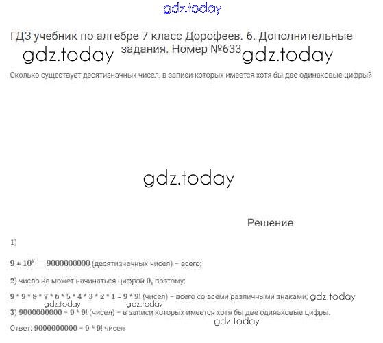 На страницах сайта gdz.today вы найдете учебный и вспомогательный материал, направленный на улучшения знаний школьной программы. ГДЗ - онлайн мир знаний Решение к упражнениям 633 Учебнику по Алгебре для 7 класса Дорофеев, Суворова Просвещение Академический школьный учебник 2020