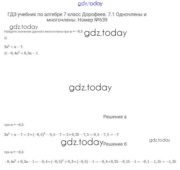 На страницах сайта gdz.today вы найдете учебный и вспомогательный материал, направленный на улучшения знаний школьной программы. ГДЗ - онлайн мир знаний Решение к упражнениям 639 Учебнику по Алгебре для 7 класса Дорофеев, Суворова Просвещение Академический школьный учебник 2020
