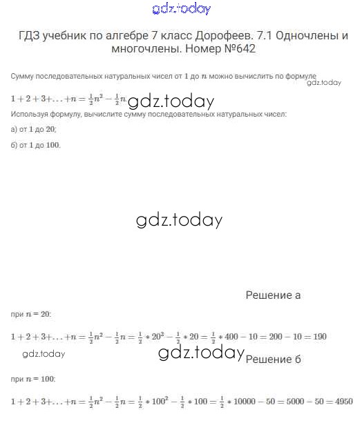 На страницах сайта gdz.today вы найдете учебный и вспомогательный материал, направленный на улучшения знаний школьной программы. ГДЗ - онлайн мир знаний Решение к упражнениям 642 Учебнику по Алгебре для 7 класса Дорофеев, Суворова Просвещение Академический школьный учебник 2020
