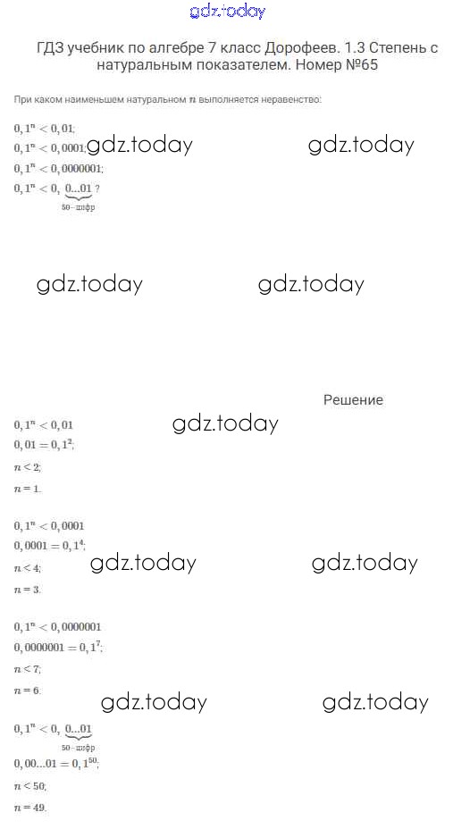 Ответы к Решение к упражнениям 65 Учебнику по Алгебре для 7 класса Дорофеев, Суворова Просвещение Академический школьный учебник 2020