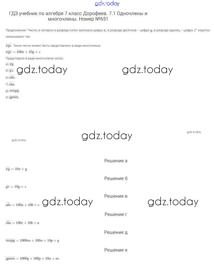 Ответы к Решение к упражнениям 651 Учебнику по Алгебре для 7 класса Дорофеев, Суворова Просвещение Академический школьный учебник 2020
