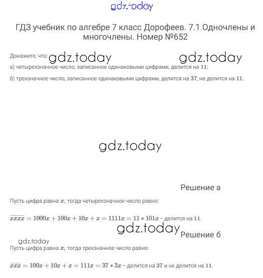 На страницах сайта gdz.today вы найдете учебный и вспомогательный материал, направленный на улучшения знаний школьной программы. ГДЗ - онлайн мир знаний Решение к упражнениям 652 Учебнику по Алгебре для 7 класса Дорофеев, Суворова Просвещение Академический школьный учебник 2020