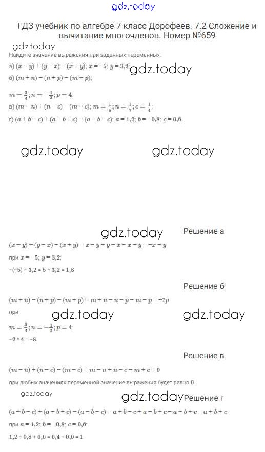 Ответы к Решение к упражнениям 659 Учебнику по Алгебре для 7 класса Дорофеев, Суворова Просвещение Академический школьный учебник 2020