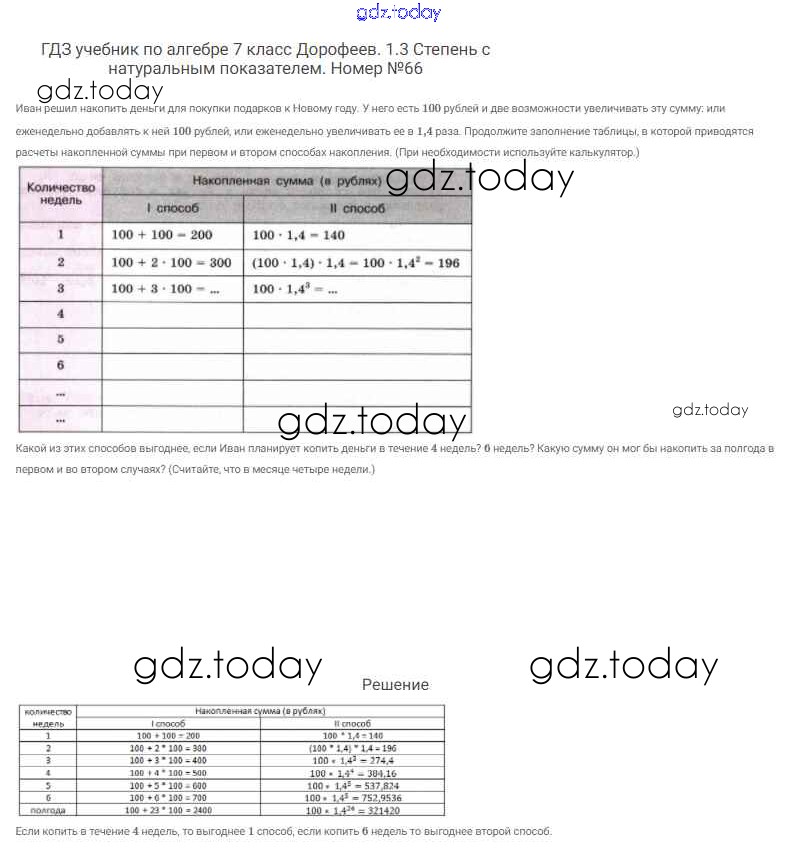 Ответы к Решение к упражнениям 66 Учебнику по Алгебре для 7 класса Дорофеев, Суворова Просвещение Академический школьный учебник 2020
