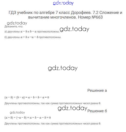 На страницах сайта gdz.today вы найдете учебный и вспомогательный материал, направленный на улучшения знаний школьной программы. ГДЗ - онлайн мир знаний Решение к упражнениям 663 Учебнику по Алгебре для 7 класса Дорофеев, Суворова Просвещение Академический школьный учебник 2020