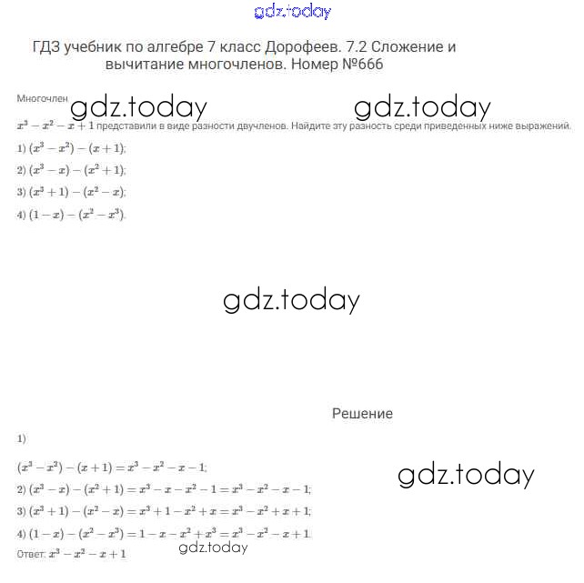 На страницах сайта gdz.today вы найдете учебный и вспомогательный материал, направленный на улучшения знаний школьной программы. ГДЗ - онлайн мир знаний Решение к упражнениям 666 Учебнику по Алгебре для 7 класса Дорофеев, Суворова Просвещение Академический школьный учебник 2020