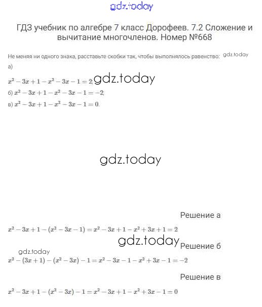 На страницах сайта gdz.today вы найдете учебный и вспомогательный материал, направленный на улучшения знаний школьной программы. ГДЗ - онлайн мир знаний Решение к упражнениям 668 Учебнику по Алгебре для 7 класса Дорофеев, Суворова Просвещение Академический школьный учебник 2020