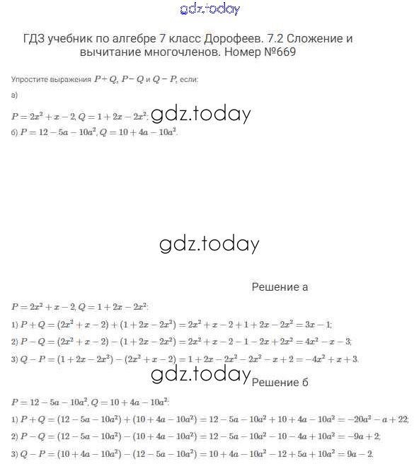 На страницах сайта gdz.today вы найдете учебный и вспомогательный материал, направленный на улучшения знаний школьной программы. ГДЗ - онлайн мир знаний Решение к упражнениям 669 Учебнику по Алгебре для 7 класса Дорофеев, Суворова Просвещение Академический школьный учебник 2020