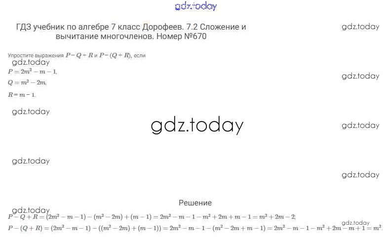 На страницах сайта gdz.today вы найдете учебный и вспомогательный материал, направленный на улучшения знаний школьной программы. ГДЗ - онлайн мир знаний Решение к упражнениям 670 Учебнику по Алгебре для 7 класса Дорофеев, Суворова Просвещение Академический школьный учебник 2020