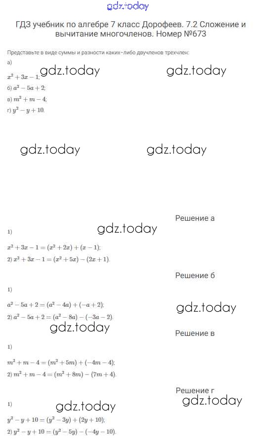 На страницах сайта gdz.today вы найдете учебный и вспомогательный материал, направленный на улучшения знаний школьной программы. ГДЗ - онлайн мир знаний Решение к упражнениям 673 Учебнику по Алгебре для 7 класса Дорофеев, Суворова Просвещение Академический школьный учебник 2020